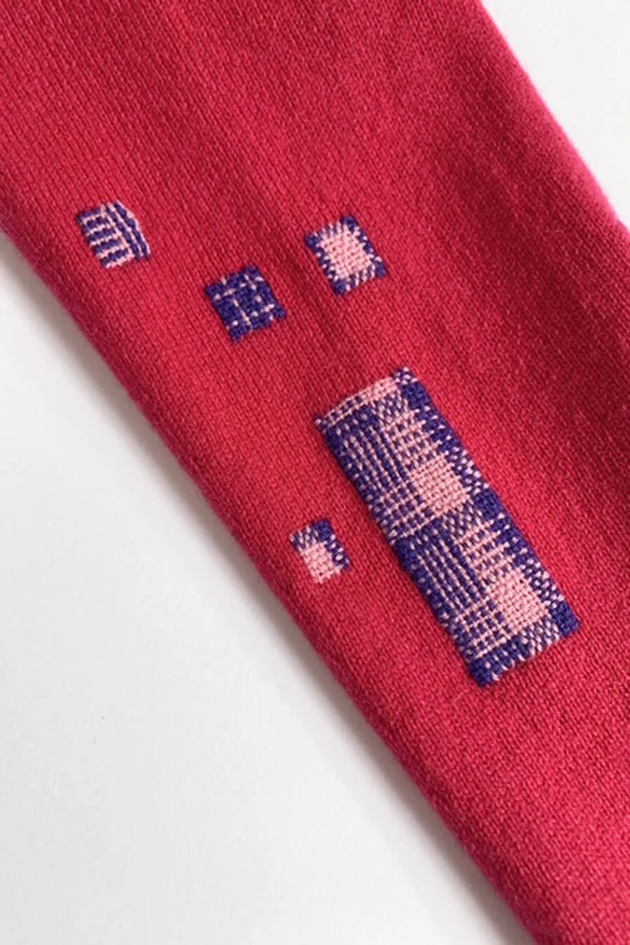 This year, my big project has been to use up industry waste yarns that I’ve bought and have been given. A lot of fashion industry waste happens in the manufacturing process, called pre-consumer waste, and in this case it’s small amounts of left over yarn. I’m able to buy these at a discounted rate, but I don’t get to choose the colours. This yarn is still extremely high quality, it just comes in very small quantities.