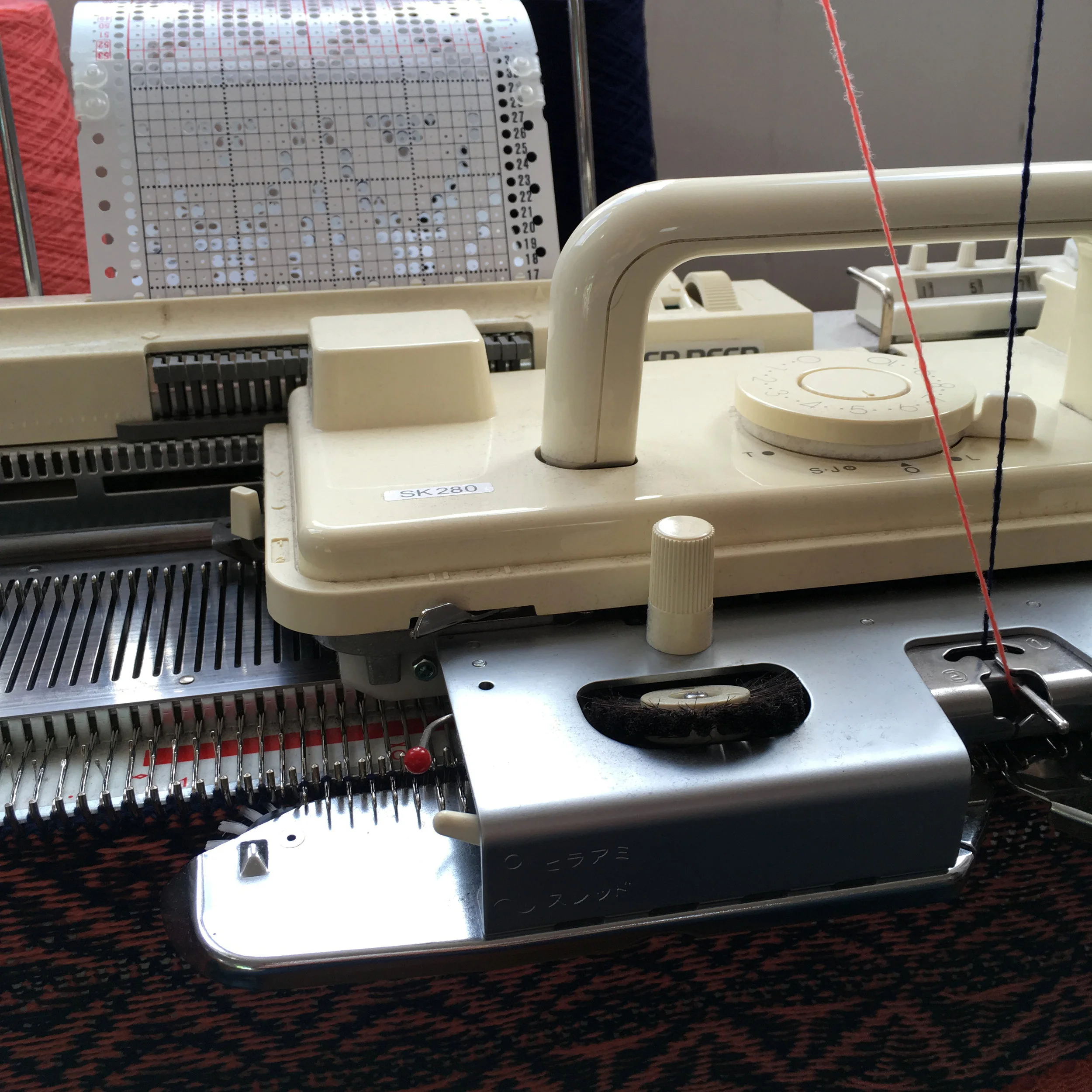 The knitting machine, ready to go!