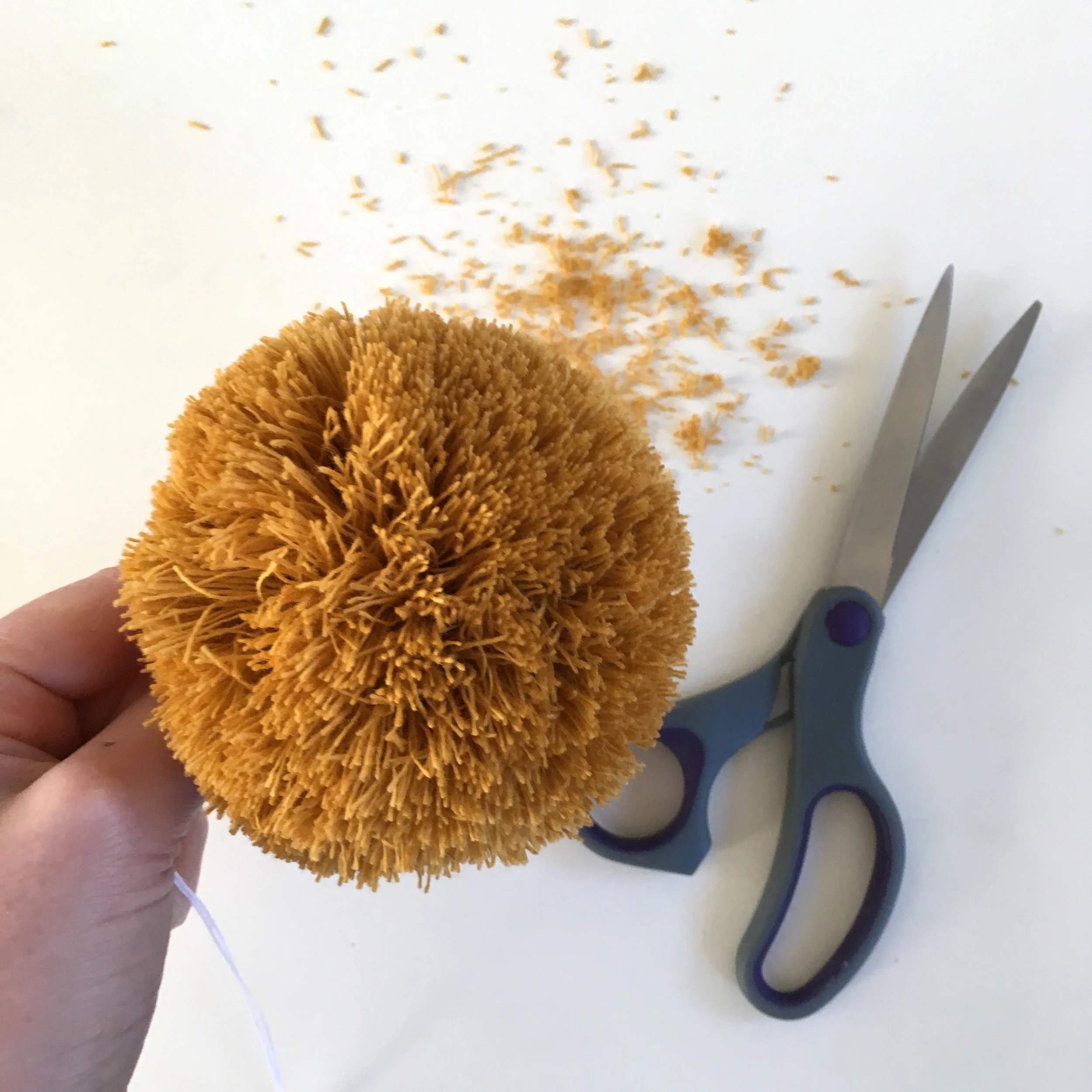 The finished lambswool pom. It's always tempting to keep trimming!