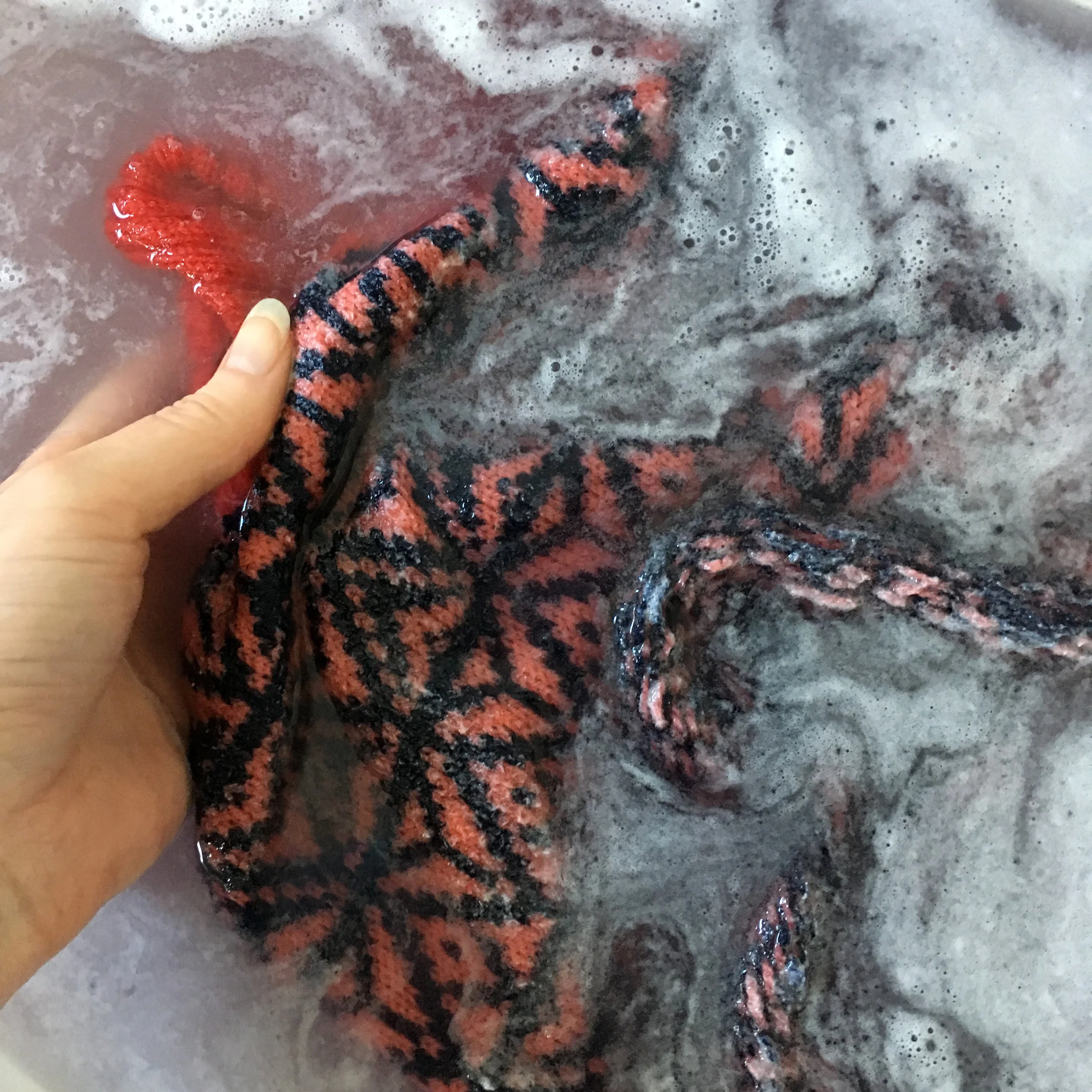 Hand washing the hat to remove excess dye